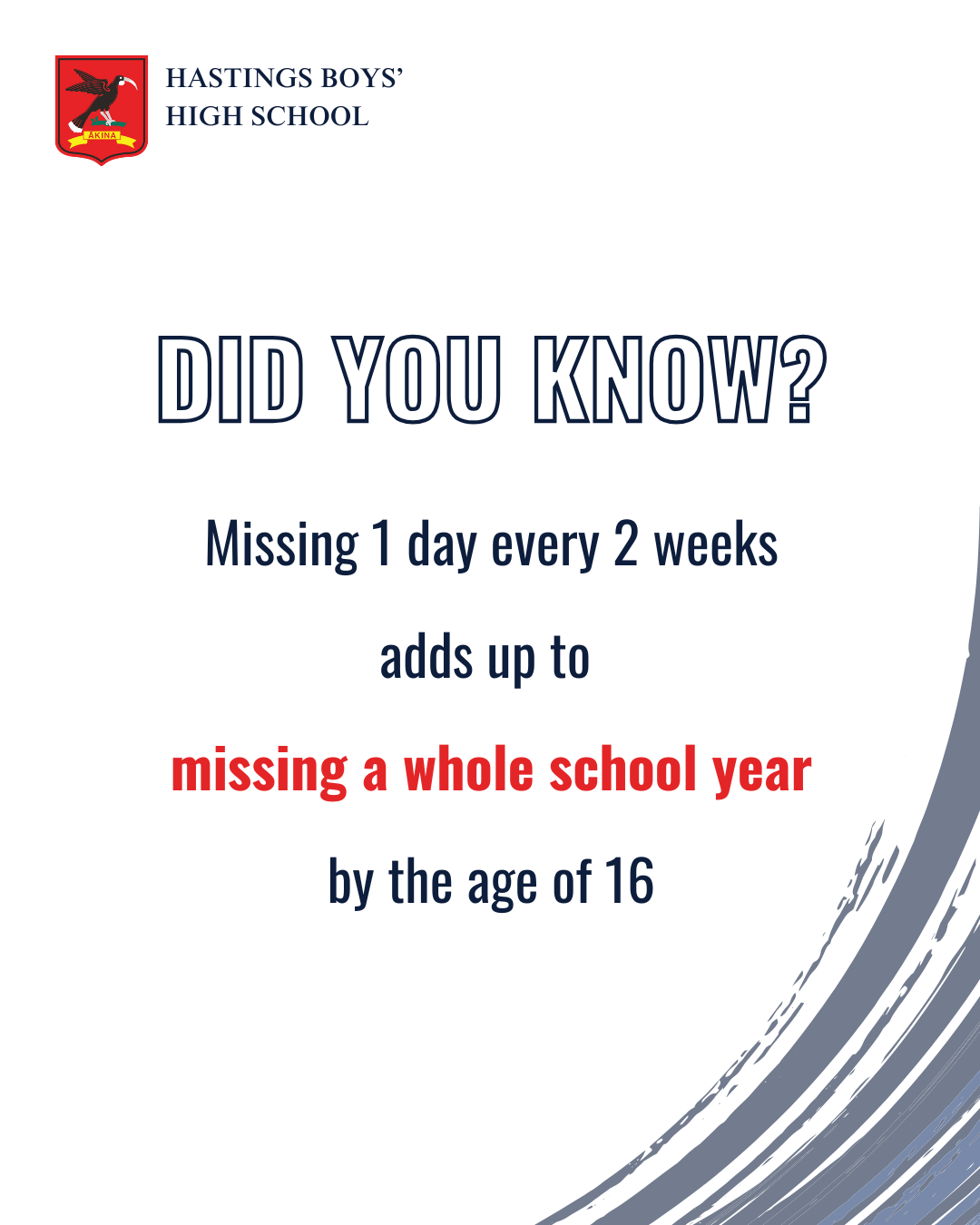 Any questions about attendance please email Mrs Sharyn Heibner sharynh@hastingsboys.school.nz